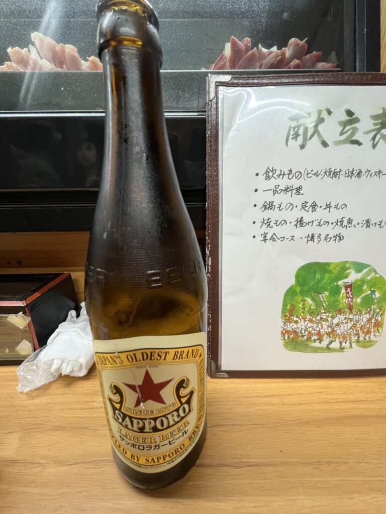 というわけで、オアシスは何といっても「酒一番」さんなのである。中洲にあってはやや異端とも言っていい店構えから大衆酒場感があふれ出ているこのお店は、前回の福岡遠征時に本誌でもコラムを連載してくださっていたサンスポ小出大輔記者に教わって、いっぺんで気に入ってしまった。店内はまさにザッツ大衆酒場で、肴の種類も豊富。そして美味し。サッポロ赤星があるのもフリークとしては嬉しい。ただ、何しろ大混雑店で、ふらり訪れてもなかなか席が確保できなかったりする。今回は前乗りした“前々検日”に訪れたのだが、運よく1席だけ空いていたカウンターに潜り込めたものの、それから1時間ほどの間に20組くらいのお客さんが「満席です」と断わられていた。一人でゴキゲンに呑んでいた常連さんが「予約したほうがいいんだよね」と呟いていたが、なるほど、それくらい凄まじい人気店なのである。いやあ、前々検日に味わえたのはラッキーだった! 一節を戦い抜くパワーをいただけました。