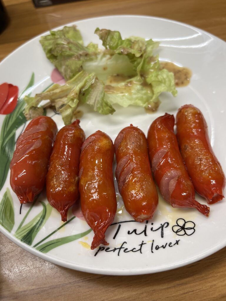「酒一番」さんで赤星と赤ウインナー。いや~、癒やされるわー