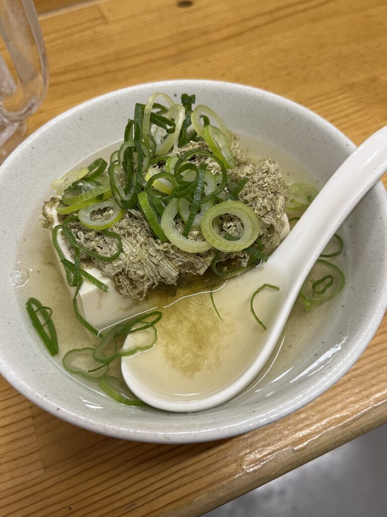 2軒目は初めて訪れる「竹富」さん。立ち呑み街から若干外れた場所にあるのだが、朝散歩で通るたびに店構えに惹かれるものがあって気になっていたのだ。暖簾をくぐってみたら、店内はまさしくTHE昭和。大阪ふうのとろろ昆布乗せの湯豆腐が美味し。