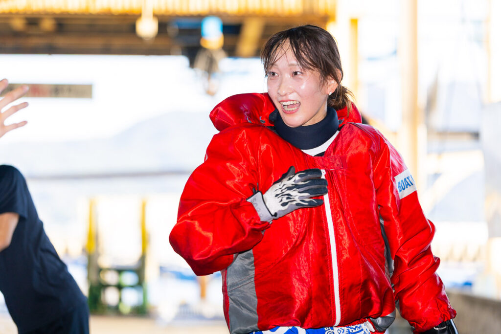 予選トップ通過は新開航。しかし、12R後は少々複雑な表情である。そう、1号艇で敗れたのだ。撃破したのは高憧四季。3コースからのまくりで新開を倒した! まさに得意技というべき一撃は、会心というしかないものだっただろう。というわけで、レース後は爽快な笑顔! また多くの選手たちも称えており、さらに笑顔は深くなっていった。残念ながら、この勝利でも次点までしか浮上できなかったのだが、しかし存在感を見せつける快勝だったのは間違いない。