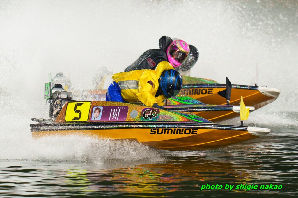 並びは枠なり3対3。イン中島孝平が先マイ態勢も、やや流れ気味の旋回。そこに狙いしましたまくり差しを突き刺していったのは磯部誠。2コースから差した原田幸哉も粘った。さらに、5コースから関浩哉がまくり差しズバッ! 3艇の争いは、2マークで逆転を狙う磯部を関がしりぞけて決着。関はトータル25点で今年も1stから2ndへの勝ち上がりを決めた。3連単は⑤-③-②=68000円(102人気)。