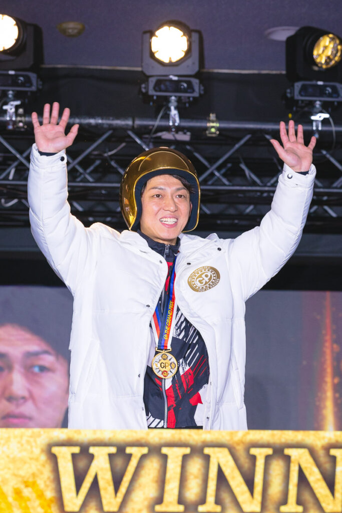関浩哉は、決して悔しさをあらわにしたわけではない。しかし、行動の端々で顔が尋常ではなく引き攣っていた。平静に振る舞おうとしながら、それでも溢れ出てしまう感情。メダル授与式に向かうために着替えを始めたとき、毒島がヘルメットやカポックなどを受け取りにやって来ている。その姿を見たとき、関の表情が一瞬だけ湿度を増したように見えた。関もまた、本気で黄金のヘルメットを獲りにいったのだ。それを逃し、優しく歩み寄る先輩の姿を見たとき、関のなかで切ない思いが高まったのかもしれない。もう誰もが思っていることだろうが、この男がSGの表彰式でてっぺんに立つ日は近い。