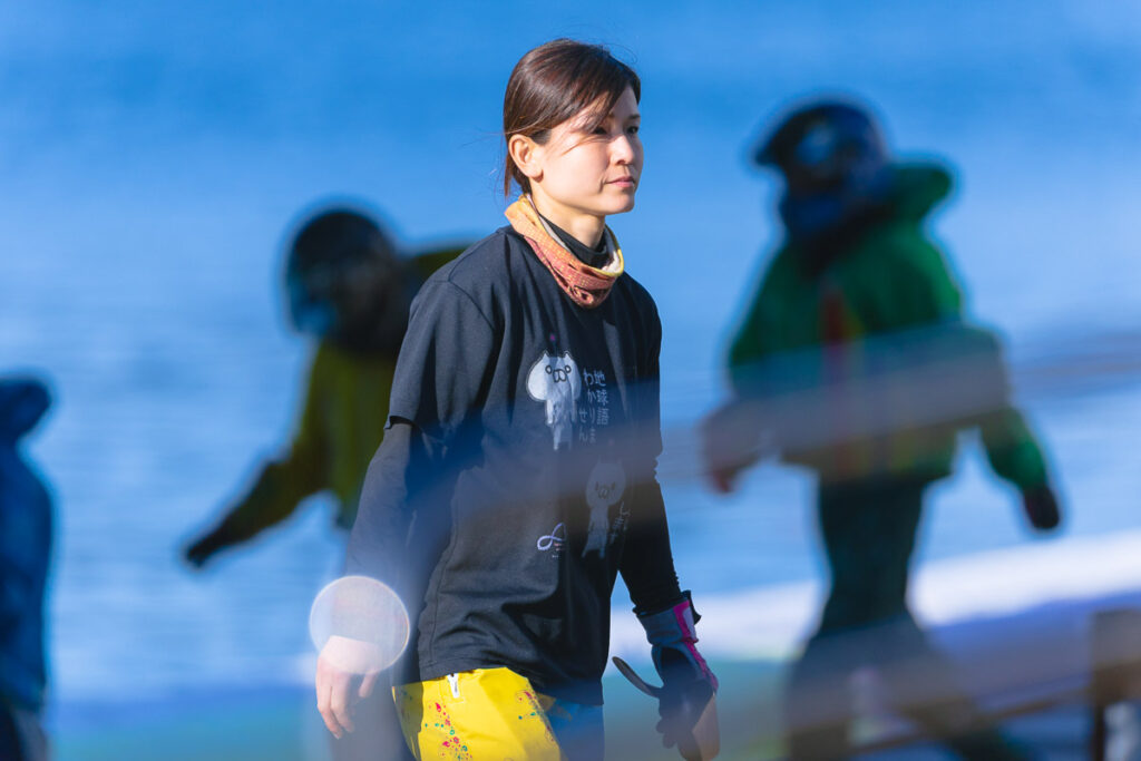で、川野の次に引いた小野生奈が緑を引くと、遠藤エミが「似合う」とすかさず合いの手を入れる。他人の黄色を笑ってたら緑を引いちゃった小野生奈、であった。もうひとりの6号艇はまたもや平高奈菜。2回続けての6号艇にガックリで、プレートを胸前で掲示するよう言われたのに、最後まで出さずじまいなのでした(笑)。