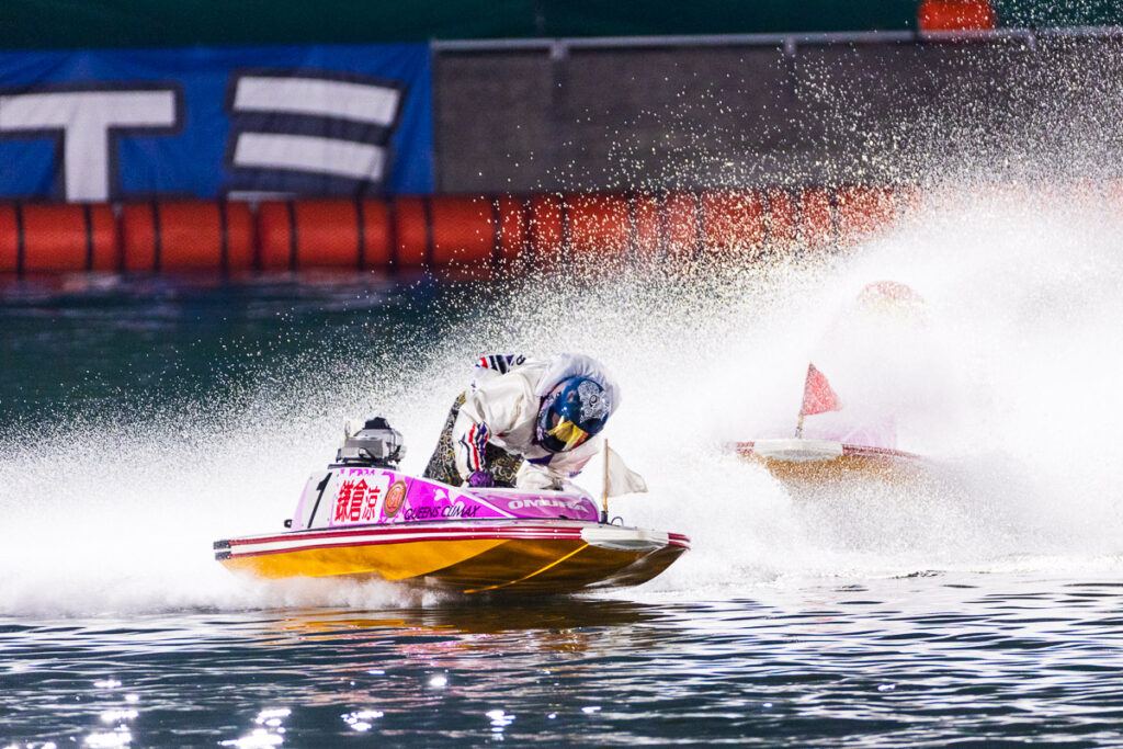2番手は實森が選考も、バックで内から平高奈菜がグイグイと伸びる。渡邉優美がうまく捌いて内から並びかけたが、2周1マークで平高が差し返して舳先を掛け、2周2マーク先マイ。これで2番手を獲り切って、2着条件の勝負駆け成功! 渡邉は3着までだった。3連単①-⑥-⑤=12310円(44人気)。