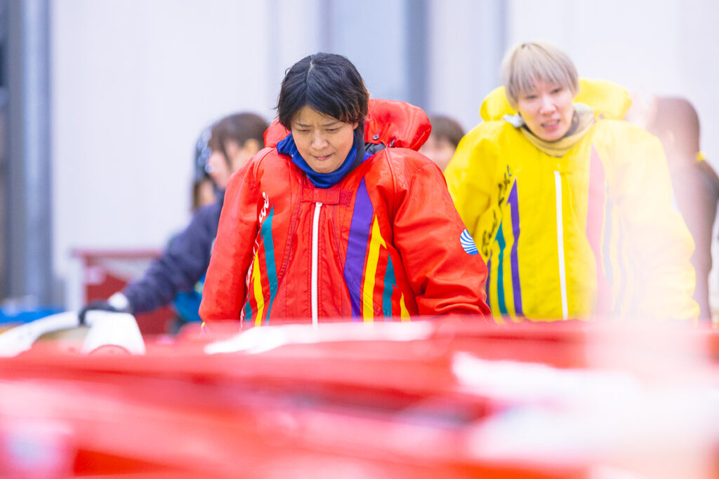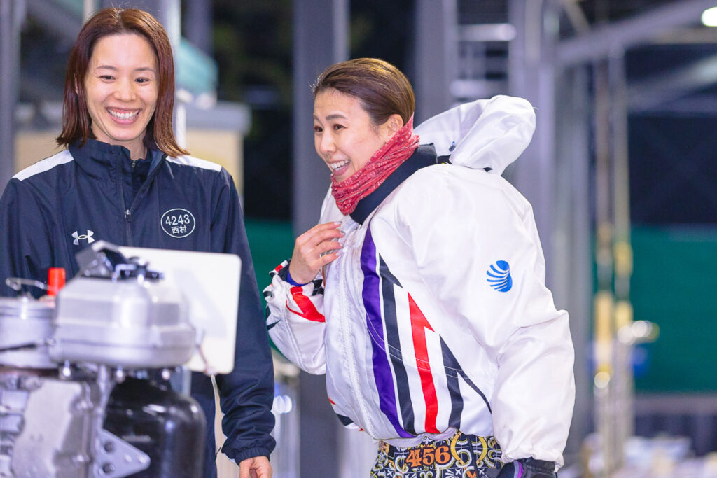 12Rでは何と言っても平高奈菜の勝負駆けだ。枠番抽選で2戦連続で6号艇を引き、しゃがみ込んだ昨日。12Rを迎えた段階では、相手の着順にもよるが、2着が欲しいところだった。前付けも考えられたが、腹を括っての6コース勝負。そして道中で見事に2番手に浮上して、優出決定! 出迎えた仲間がみなその健闘を称えるなか、平高も最初は笑顔を見せていたが、やがて顔が渋くなってくる。「疲れたぁ~~……」。たしかに大激戦であり、また調整にも奔走する一日だったから、疲労感も当然、大きかったことだろう。そのうえで、その疲労感は充実感にも見えた。とにかく、本当にお見事!