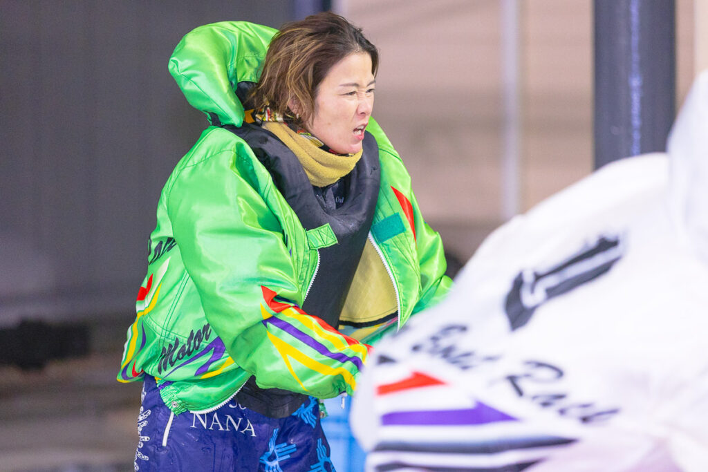 遠藤エミが珍しく表情をカタくしていた。前日の時点で無事故完走で優出当確だったのは遠藤と川野芽唯。川野が2ポイント差リードで、まずは川野には先着したいところだった。それはなんとか果たせたのだが、1ポイント差だった小野生奈に2着に先着され、2着と3着には2ポイント差があるので、この時点で小野を得点で上回ることができなくなった。すなわち、優勝戦1号艇がなくなったのだ。どこまで把握していたかはわからないが、優勝戦の内枠もなくなっている。優勝戦1号艇を意識していたとするなら、鎌倉涼に逃げ切りを許し、小野にも先着を許したのは激痛だったに違いない。険しめの表情になるのも致し方ないところだった。