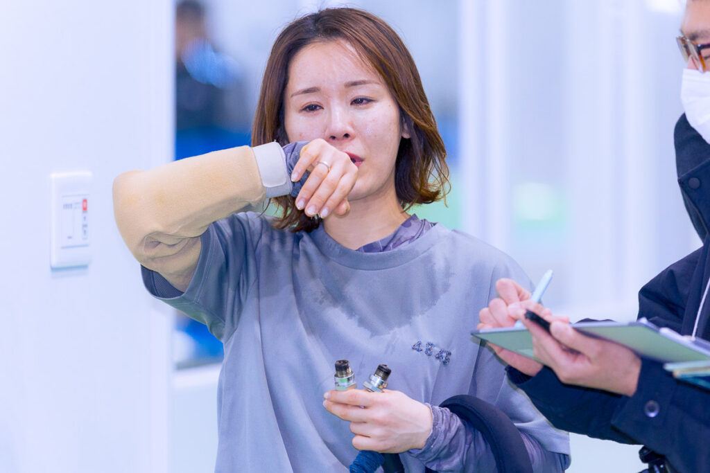 ピットに上がったときから、顔はせつなく歪んでいた。なんとか笑みを浮かべようとするが、かえって不自然な表情に映る。前田紗希は、1号艇を活かせなかった、いや、いったんは先頭に立ちながら勝てなかった痛恨の思いにもがき苦しんでいるようだった。基本的に笑みを絶やさないでいることが多いピットでの前田。しかし、モーター返納作業の間は暗鬱な表情になり、どうしてもうつむき加減になっている。手に入れかけた勲章を取りこぼしてしまったのだ。無念、あるいは自分に何が足りなかったのか、そういう思いが頭に渦巻くのは当然である。
