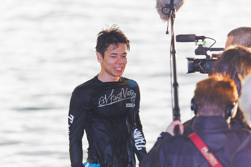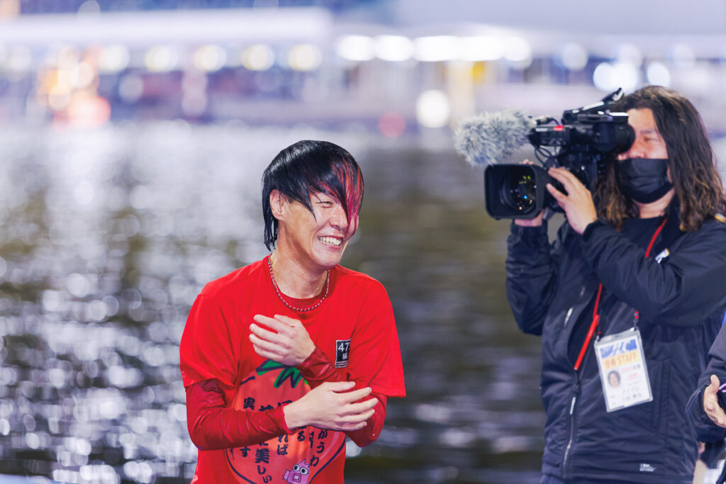 つづいて8R発売中に常住蓮。こちらは佐賀勢と九州勢が集結し、さらには砂長も同世代ということで加わっている。常住もウルトラマンスタイルで投げ込まれ、次に飛び込んだのは師匠の山田康二! 敬愛する師匠が一緒に飛び込んでくれて、常住にとっては忘れられない水神祭となったことだろう。