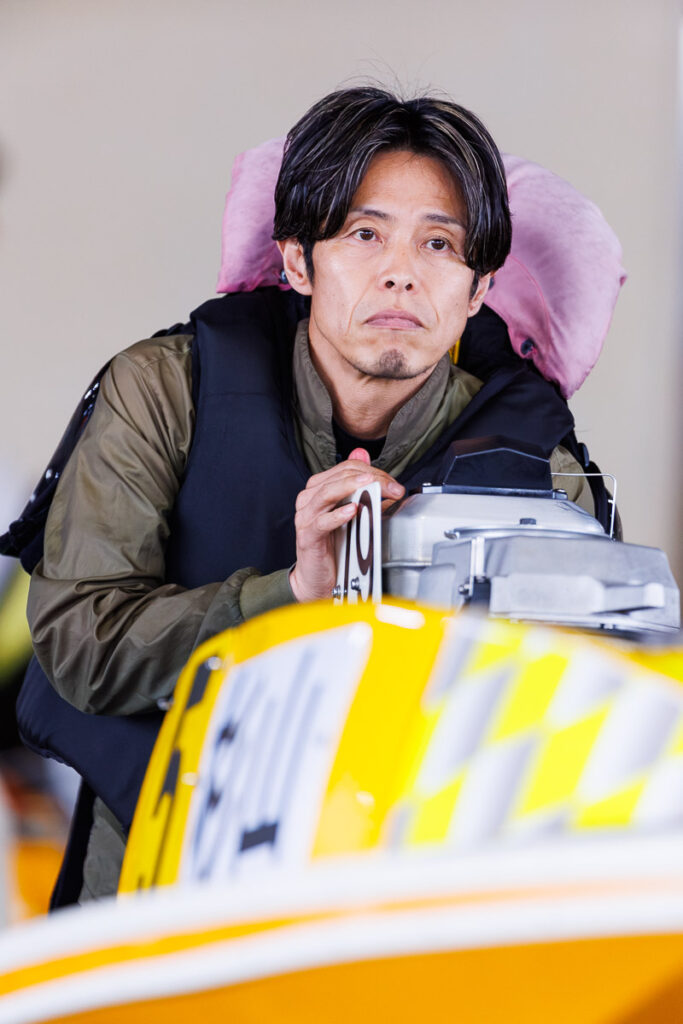 白井英治は、優勝戦の朝などはわりとマイペースに過ごすタイプ。動き出しは遅いことが多く、だから朝イチで白井の姿が水面にあったのを見たときは驚いたものだ。優勝戦メンバーではまだ誰もボートを下ろしていないタイミングで、白井だけが試運転をしている。これはなかなかレアな光景なのである。