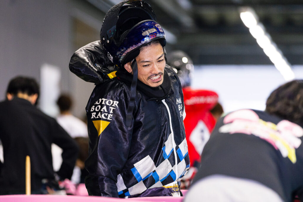 山崎郡が唇を噛む。やはり、この敗退はあまりに無念だ。予選トップ通過の1号艇。赤岩善生が6号艇で前付けに動くことはわかっていた。しかし、柴田光が抵抗するのではなく、コースを自ら奪いに来るのは想定外だったか。スタート勘を逸して後手を踏み、渡辺浩司の4コースまくりを許しての大敗。12R発売中になってもまだ、山崎の表情はこわばっているように見えていて、この痛恨の大きさが胸を鷲掴みにされるほど伝わってきたのだった。