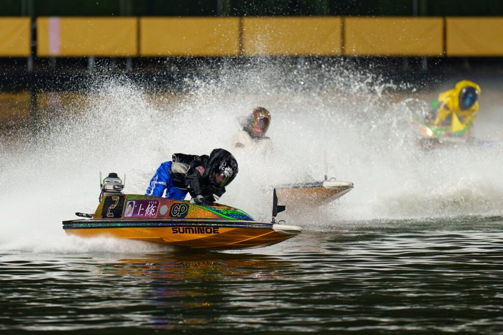 並びは枠なり3対3。スタートはほぼ横一線も、先マイ態勢に入らんとするイン山口剛に対して2コース上條暢嵩がツケマイ敢行! いったんは山口が受け止めたかと思われたが、バックでぐいぐい出ていったのは上條。2マークまでに完全にのぞいてねじ伏せるような旋回で山口をしりぞけた。地元で嬉しい初戦快勝!