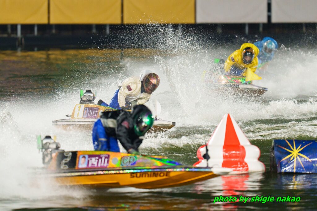 ピット離れで西山貴浩が飛び出しかけ、山口剛との接触はあったものの、結果的に並びは枠なり3対3。イン山口はやや後手を踏むスタートで、のぞいた2コースの西山がプレッシャーをかけながら絶妙のタイミングで差しを放ち、見事に差し切った。西山は1着が欲しいところだったから、見事な勝負駆け成功! 3連単は②-①-⑤=12200円(30人気)。