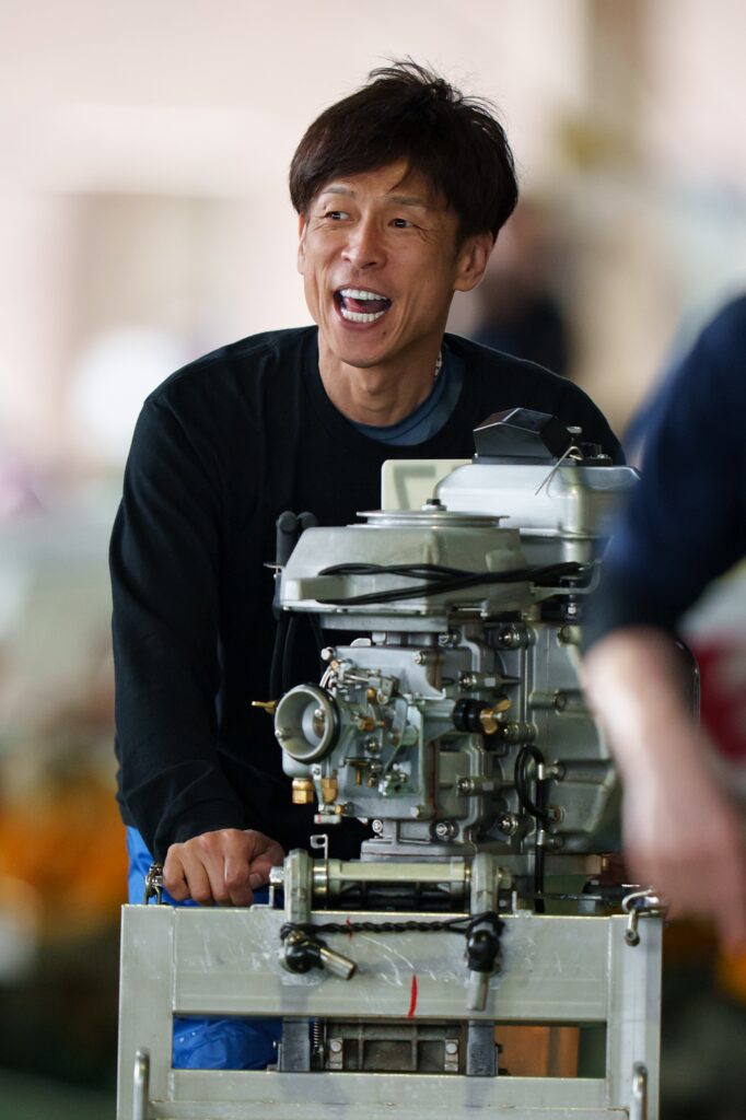 前検一番時計は平田忠則。そして、中辻崇人がナンバー2。伸びを引き出す中辻、その薫陶を受けて伸び型に仕上げることもある平田が上位を占めるのは、まあ妥当というところだろう。上位タイムを出しているのは前検の班が1~5班の“前半組”。まず1~5班がタイム測定とスタート練習を行ない、6~9班は20分ほどの試運転タイムの後、同様にタイム測定とスタート練習を行なう。その間に風向きが微妙に変わったり、潮の干満により水位が変わったりしているので、前半のほうがタイムが出やすかった可能性はあるだろう。