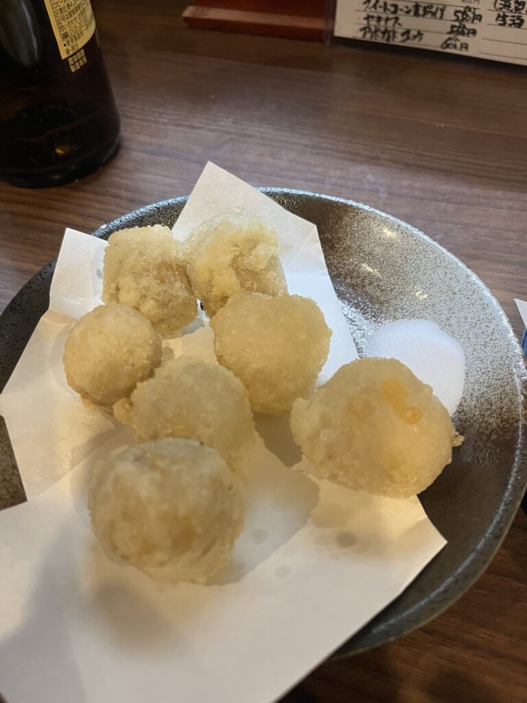 林屋さんはとにかく、肴が絶品。鶏ハラミのおろしダレ焼は、赤星またはプレーンサワーを呑む際には必須。タレの味は後を引くこと必至で、何度でもリピートしたくなること間違いなしである。本マグロの生レバ風は、メニュー名を見ると???と首を傾げるが、注文してみると納得。マグロをゴマ油と塩で食べるもので、このアイデアは素敵すぎる。また、タコぶつがめちゃ美味し! 林屋さんも滋賀の地酒を置いているので、これを頼むと日本酒を呑みたくなってしまう、というか、呑んでしまう。